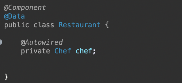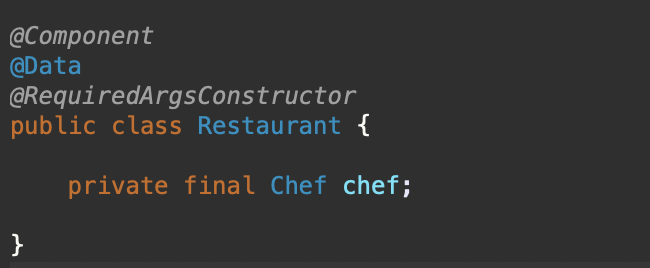 - Restaurant 객체의 Chef 인스턴스 변수가 Chef 타입에 주입되어 있다.