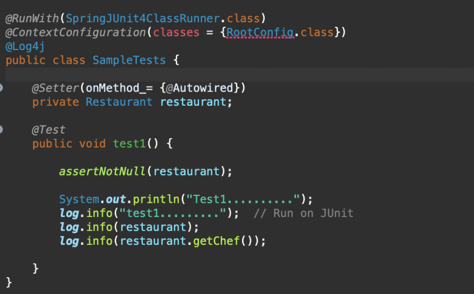 - Restaurant 의 @Data 어노테이션으로 getter, setter 가 자동으로 생성됐음. setter의 onMethod_ 속성을 이용해서 @Autowired 추가.