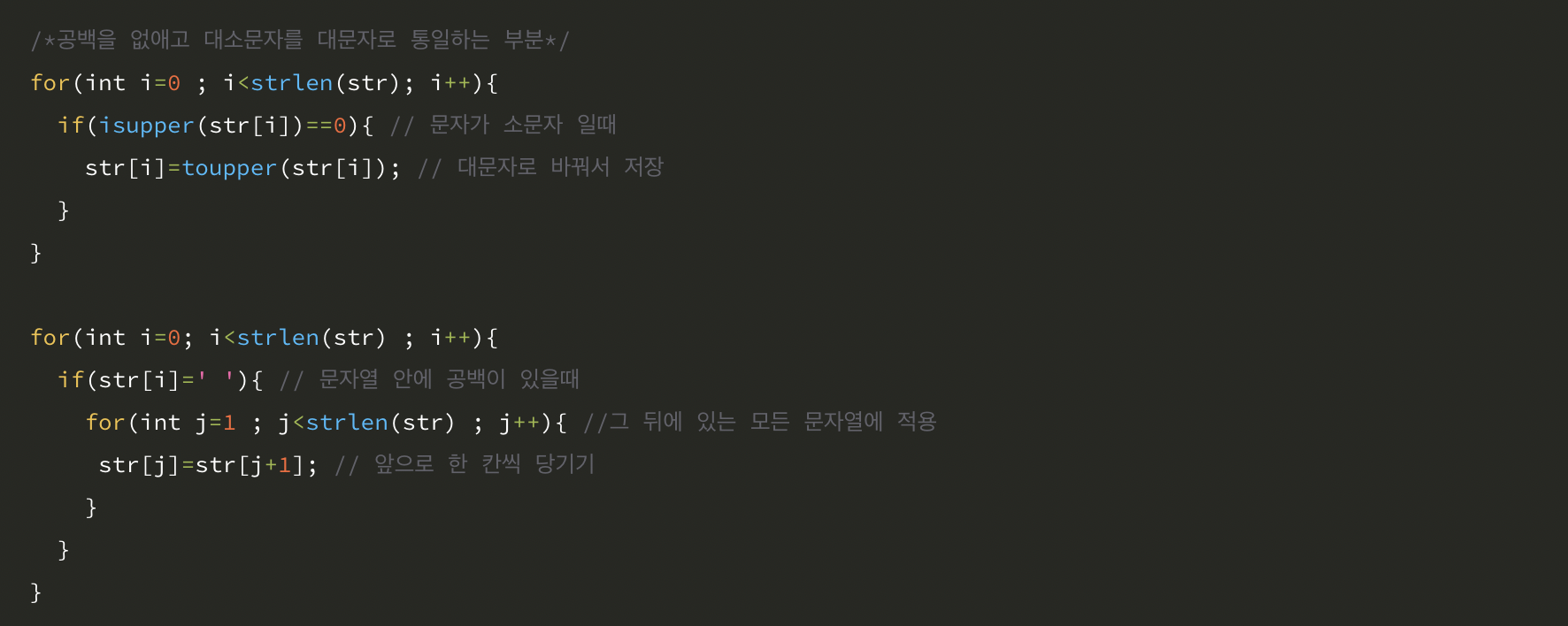 -> 여기서 모든 문자를 대문자로 통일해주기 위해 ctype 헤더 파일을 쓸 예정 (#include <ctype.h>)