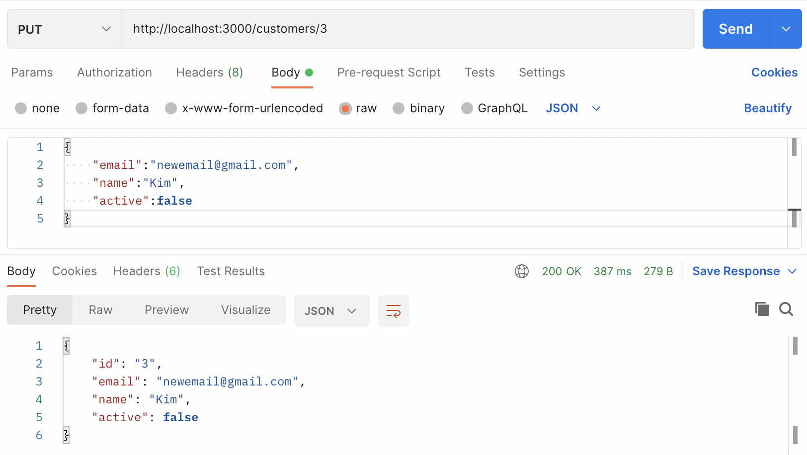 4️⃣PUT /customers/:id 로 id로 칼럼 수정