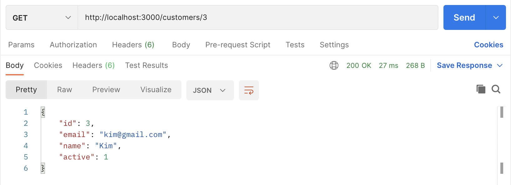 3️⃣GET /customers/:id 로 id로 칼럼 조회