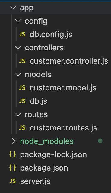 app/controller 폴더를 생성하고 customer.controller.js 파일을 작성한다. 컨트롤레 안에 CRUD function을 구현할 것임.