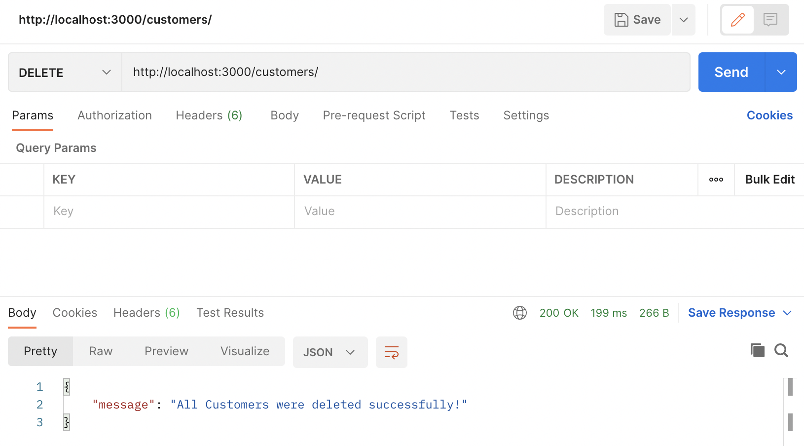 | DELETE | /customers/:id | id로 Customers 삭제 |