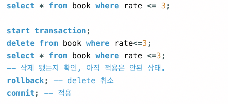 - mysql server에서는 begin tran, rollback tran, commit tran으로 사용된다고 하니 참고하자.