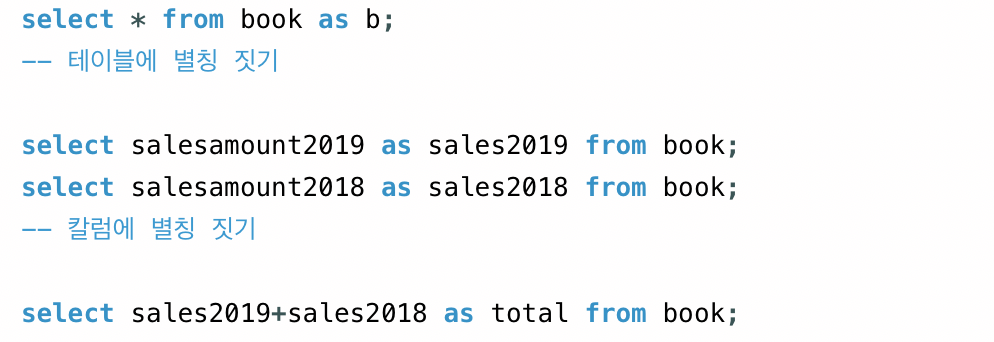 - 대표적으로 알아보기 힘든 칼럼에 AS를 많이 사용한다.